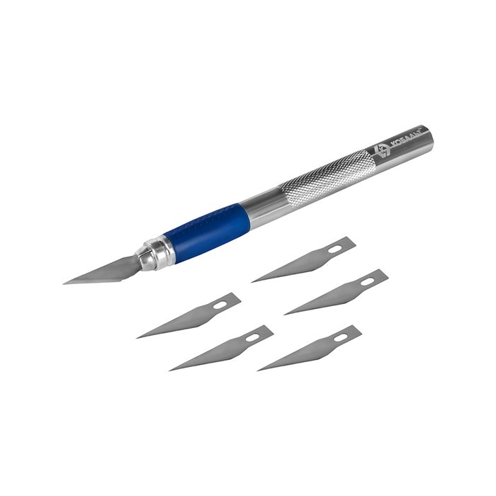 Нож для художественных работ КОБАЛЬТ перовые лезвия 6 шт, металлический корпус, блистер (245-053) - цена, фото, технические характеристики
