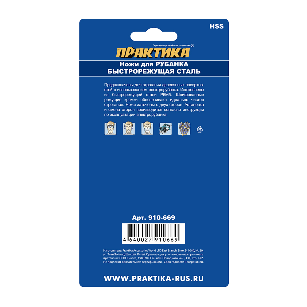 Нож для рубанка ПРАКТИКА 110 мм х 29 х 3 мм, быстрорежущая сталь, (2 шт), для Makita 1911 (910-669) - цена, фото, технические характеристики