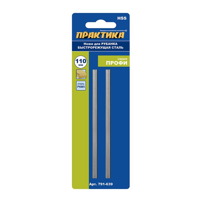 Нож для рубанка ПРАКТИКА 110 мм х 5,5 мм, быстрорежущая сталь (HSS), (2 шт) для рубанков 110 мм (791-639) - цена, фото, технические характеристики