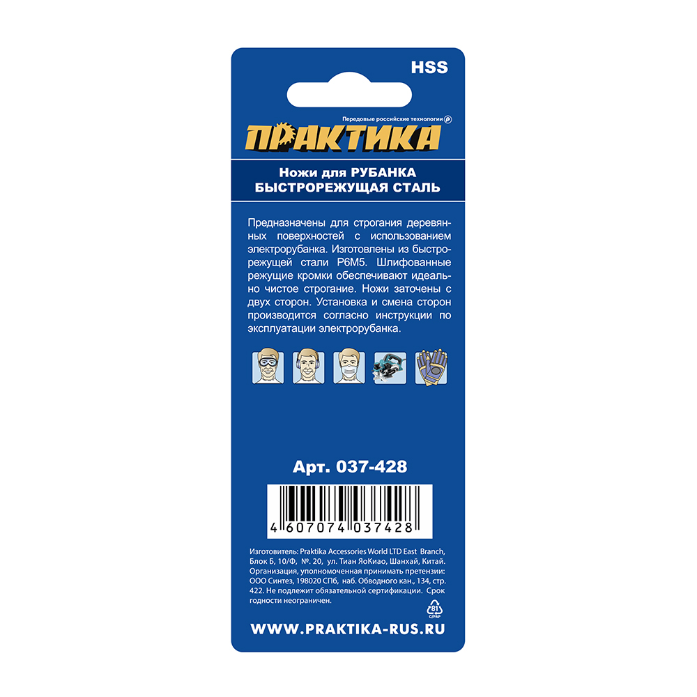 Нож для рубанка ПРАКТИКА 82 мм х 5,5 мм, быстрорежущая сталь, ( 2 шт ) (037-428) - цена, фото, технические характеристики