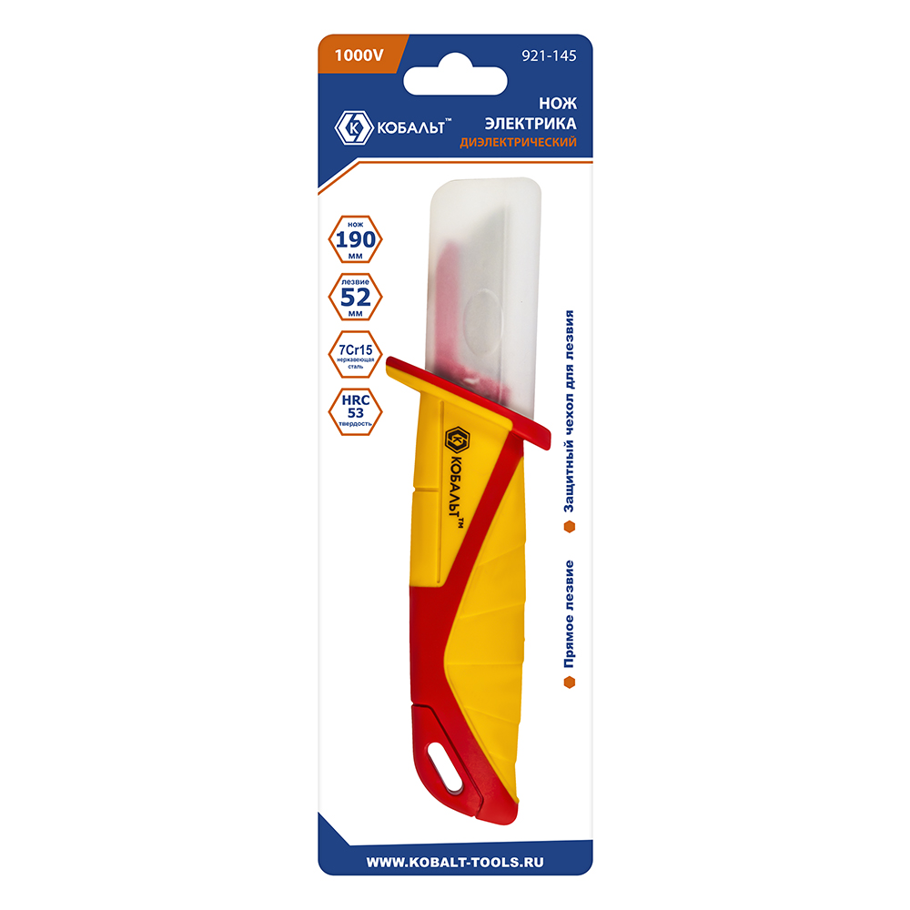 Нож электрика КОБАЛЬТ диэлектрический, 190 мм, прямой, изолированное лезвие 52 мм, блистер (921-145) - цена, фото, технические характеристики