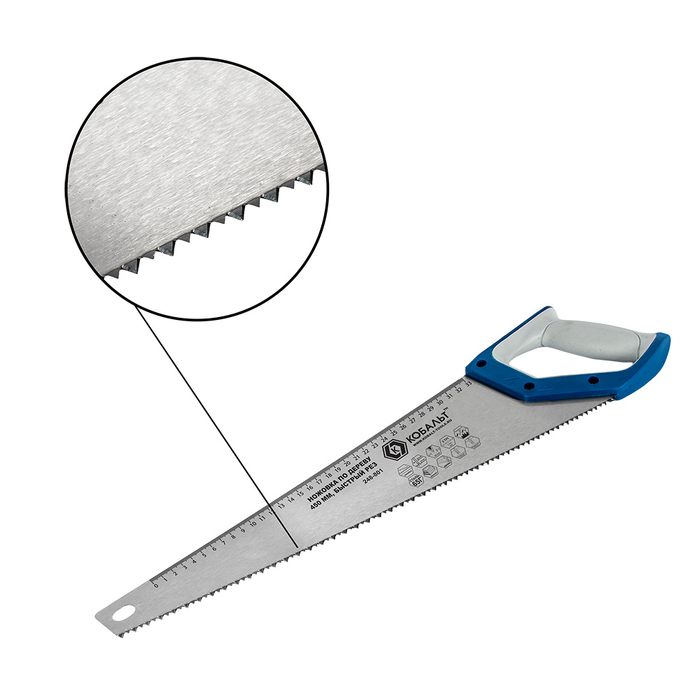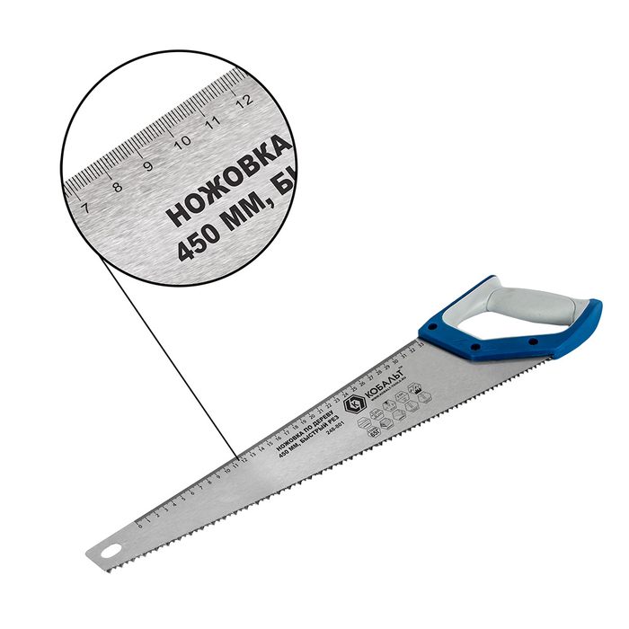 Ножовка по дереву КОБАЛЬТ быстрый рез, 450 мм, шаг 5 мм (5 TPI), закаленные зубья, 2D-заточка, 2-х компонентная рукоятка (248-801) - цена, фото, технические характеристики