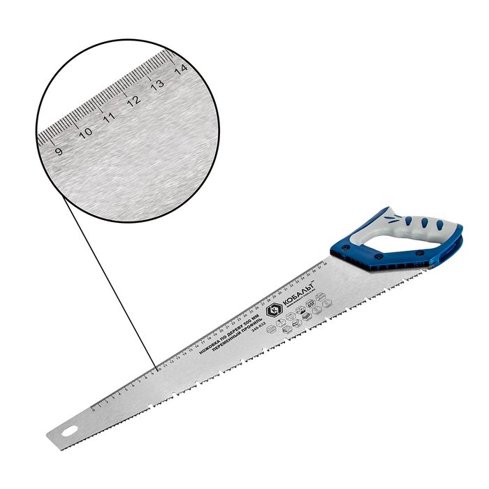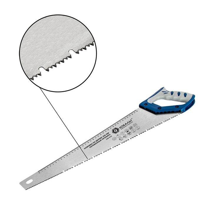 Ножовка по дереву КОБАЛЬТ переменный профиль зубьев, 500 мм, шаг 3.5 мм (7 TPI), закаленные зубья, 3D-заточка, 2-х комп. рукоятка (248-832) - цена, фото, технические характеристики