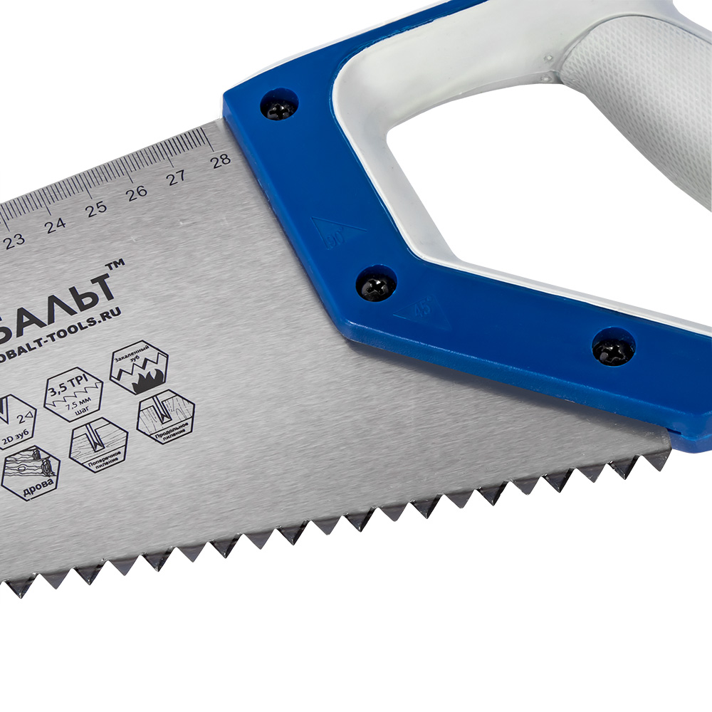 Ножовка по дереву КОБАЛЬТ быстрый грубый рез, 400 мм, шаг 7.5 мм (3.5 TPI), закаленные зубья, 2D-заточка, 2-х комп. рукоятка (916-615) - цена, фото, технические характеристики