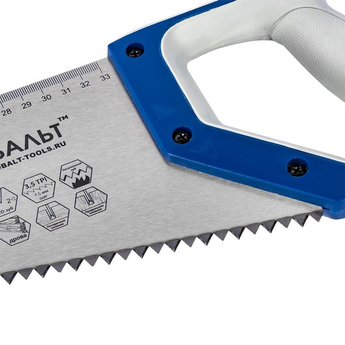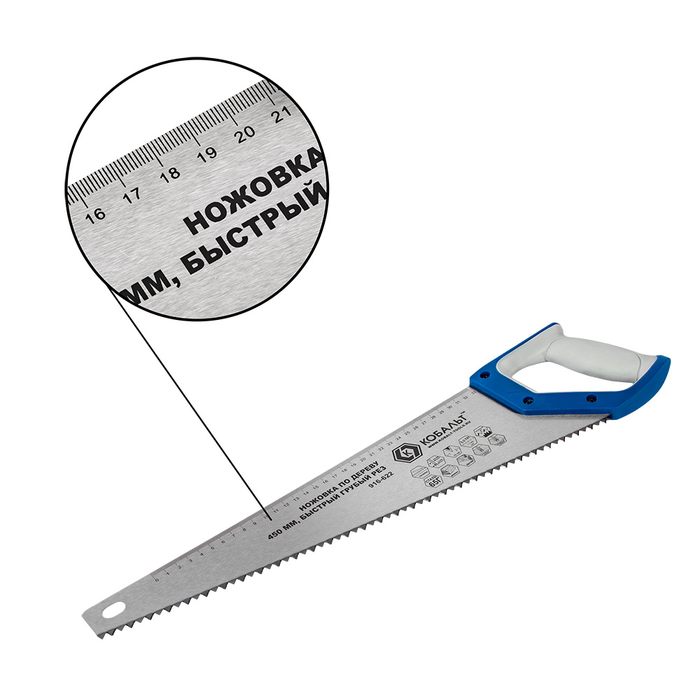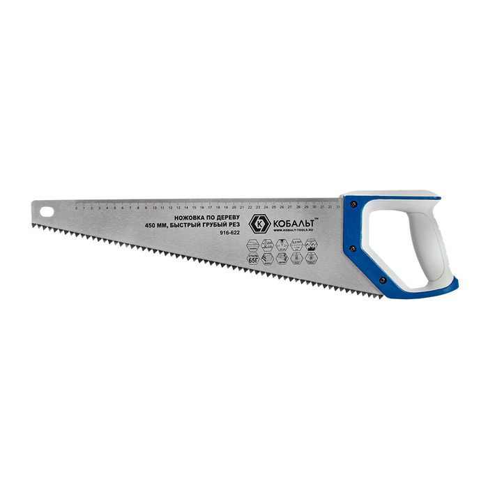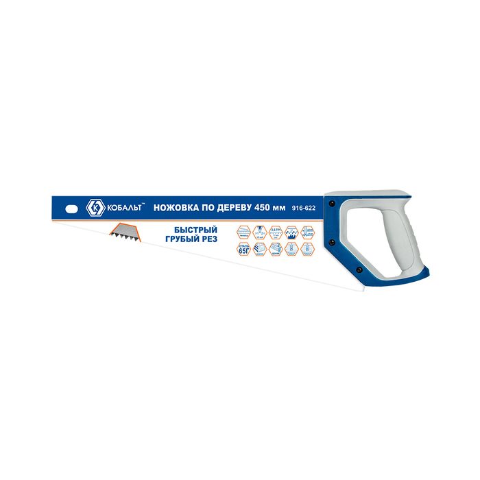 Ножовка по дереву КОБАЛЬТ быстрый грубый рез, 450 мм, шаг 7.5 мм (3.5 TPI), закаленные зубья, 2D-заточка, 2-х комп. рукоятка (916-622) - цена, фото, технические характеристики