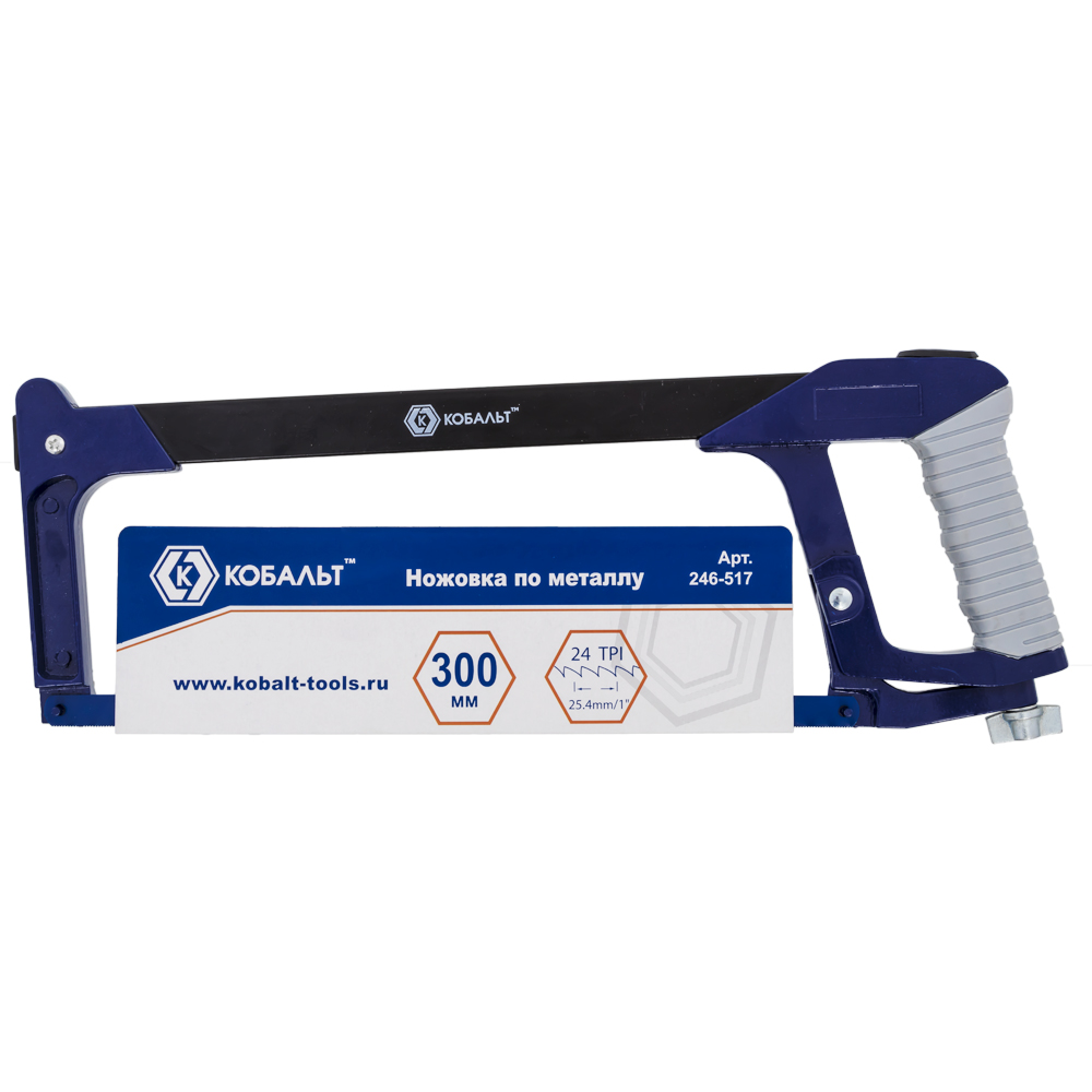 Ножовка по металлу КОБАЛЬТ 300 мм, металл. рамка с упором установка полотна 45/90 град., алюм. прорез. рук., полотно HCS в компл. (246-517) - цена, фото, технические характеристики