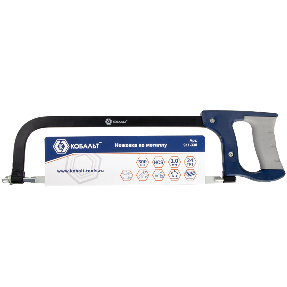 Ножовка по металлу КОБАЛЬТ 300 мм, металлическая литая рамка, прорезиненная пластиковая рукоятка, полотно HCS в комплекте (911-338) - цена, фото, технические характеристики