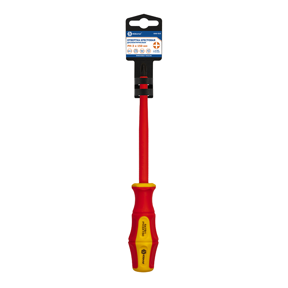 Отвертка диэлектрическая КОБАЛЬТ Ultra Grip PH-3 х 150 мм, CR-V, двухкомпонентная рукоятка, подвес (646-515) - цена, фото, технические характеристики
