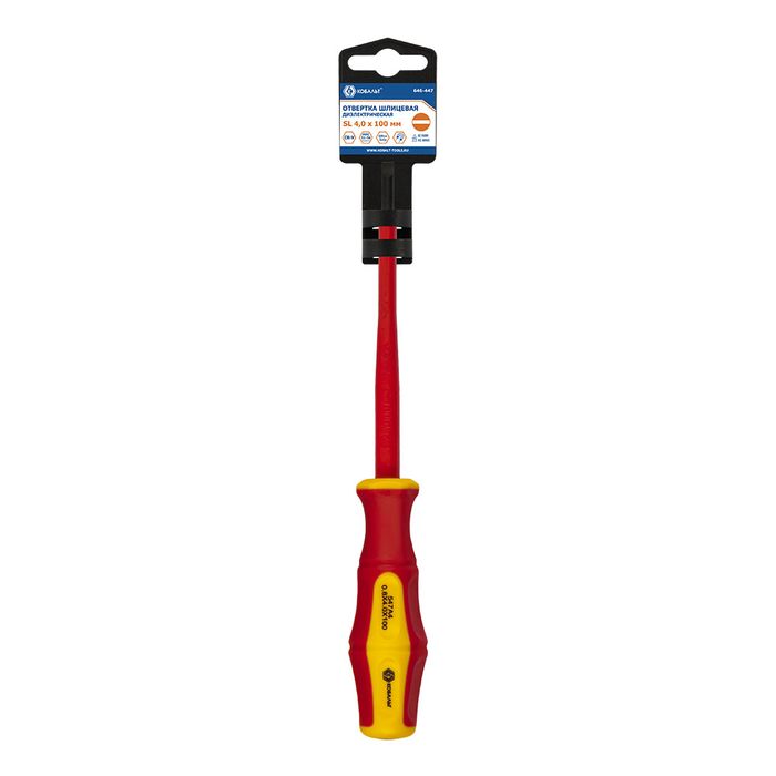 Отвертка диэлектрическая КОБАЛЬТ Ultra Grip SL 4,0 х 100 мм, CR-V, двухкомпонентная рукоятка, подвес (646-447)