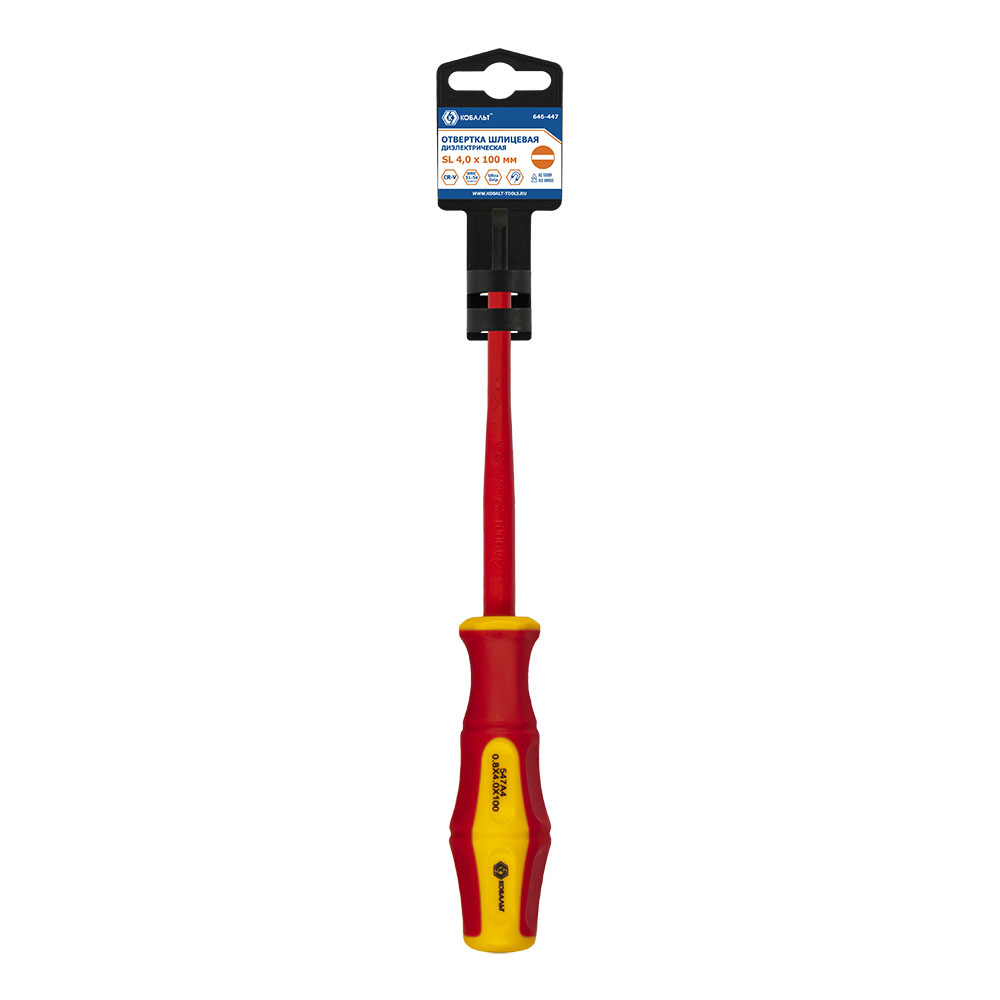 Отвертка диэлектрическая КОБАЛЬТ Ultra Grip SL 4,0 х 100 мм, CR-V, двухкомпонентная рукоятка, подвес (646-447) - цена, фото, технические характеристики