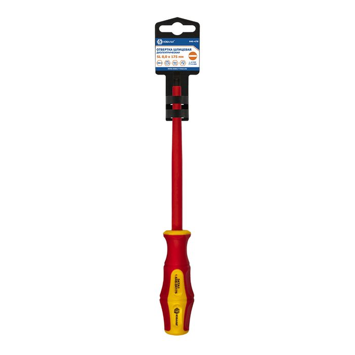 Отвертка диэлектрическая КОБАЛЬТ Ultra Grip SL 8,0 х 175 мм, CR-V, двухкомпонентная рукоятка, подвес (646-478)