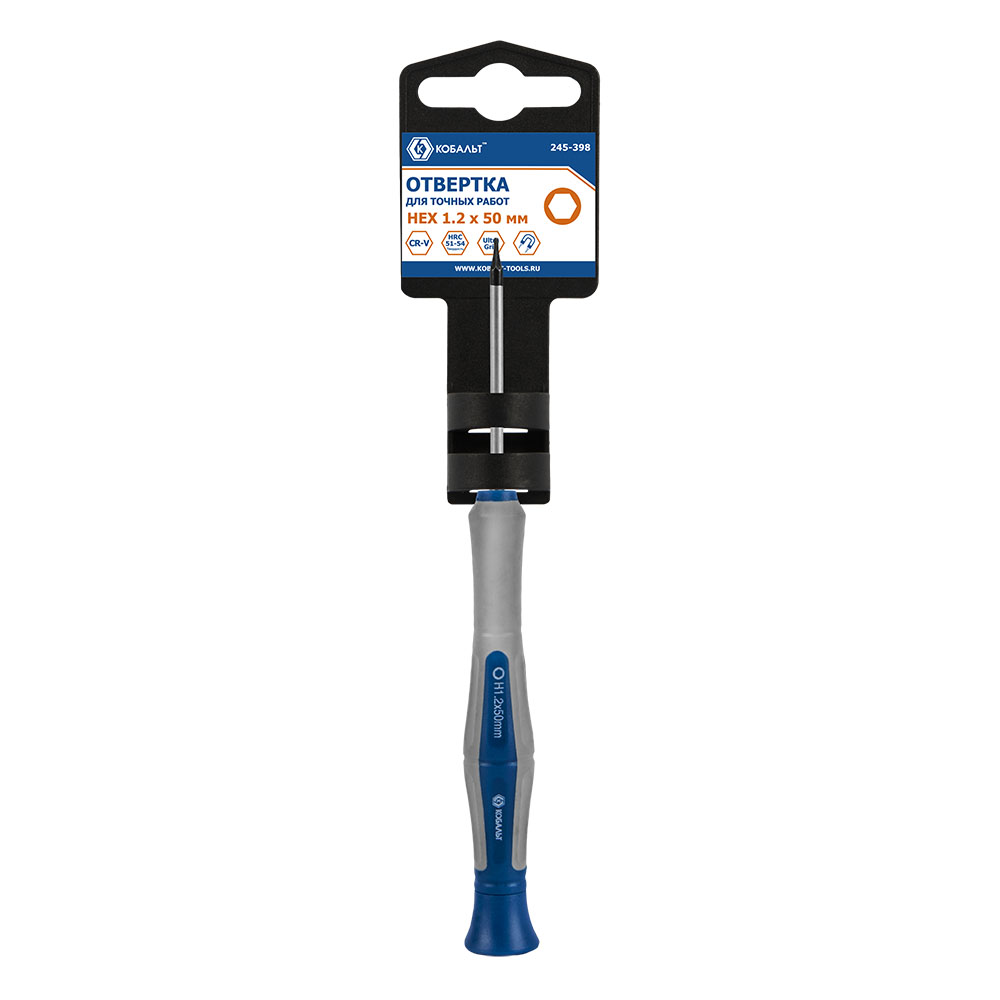 Отвертка для точных работ КОБАЛЬТ Ultra Grip HEX 1.2 х 50 мм, CR-V, двухкомпонентная рукоятка, подвес (245-398) - цена, фото, технические характеристики