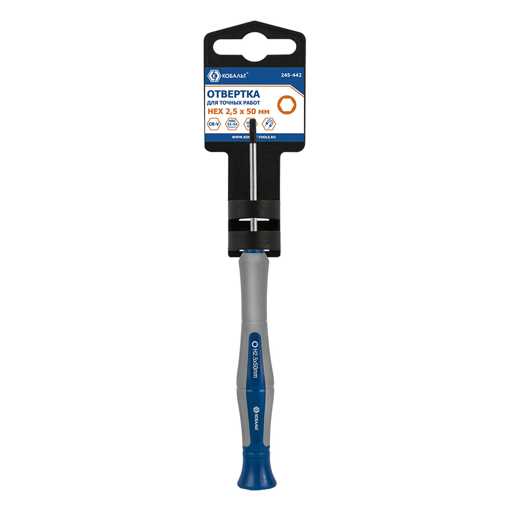 Отвертка для точных работ КОБАЛЬТ Ultra Grip HEX 2.5 х 50 мм, CR-V, двухкомпонентная рукоятка, подвес (245-442)
