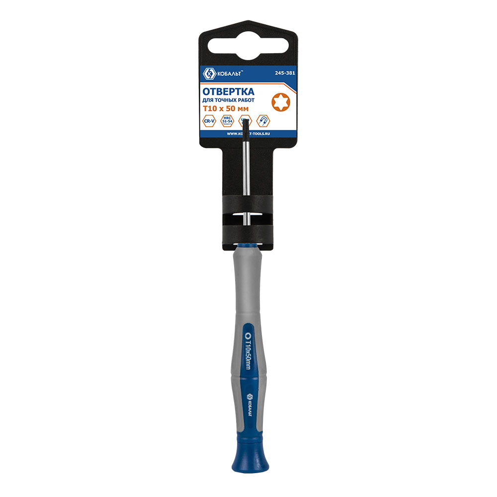 Отвертка для точных работ КОБАЛЬТ Ultra Grip T10 х 50 мм, CR-V, двухкомпонентная рукоятка, подвес (245-381)