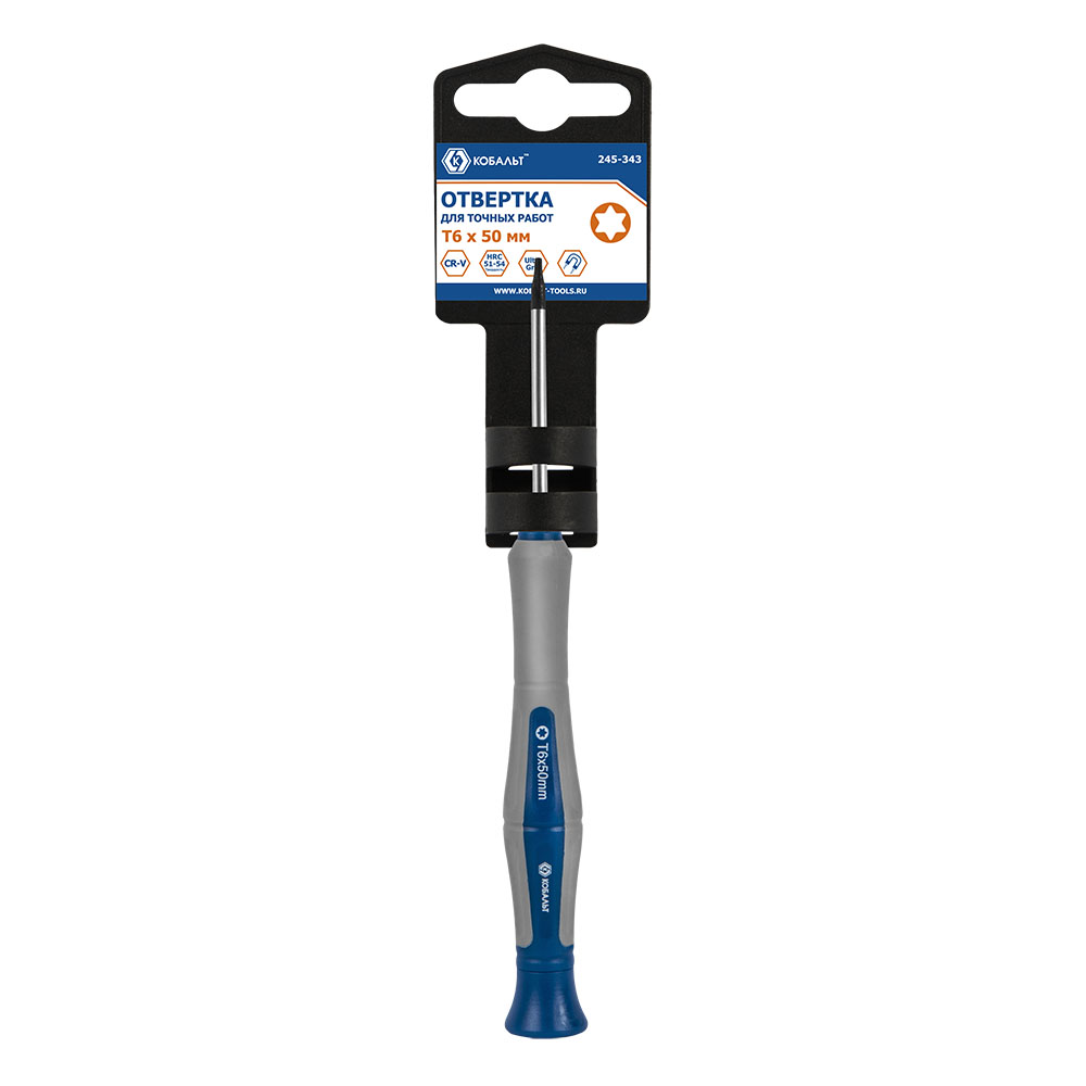 Отвертка для точных работ КОБАЛЬТ Ultra Grip T6 х 50 мм, CR-V, двухкомпонентная рукоятка, подвес (245-343)
