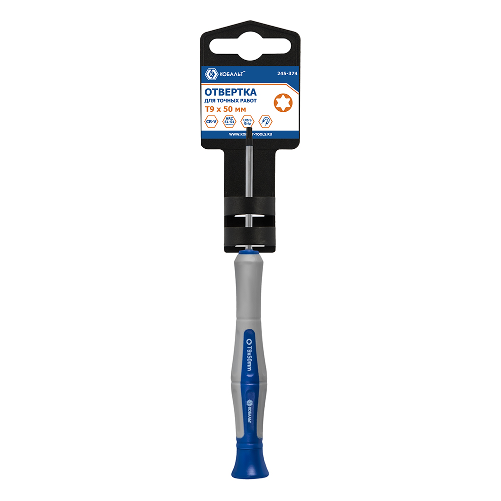 Отвертка для точных работ КОБАЛЬТ Ultra Grip T9 х 50 мм, CR-V, двухкомпонентная рукоятка, подвес (245-374)