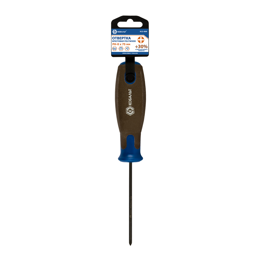 Отвертка POLYWOOD КОБАЛЬТ PH-0 х 75 мм CR-V, древесно-полимерная рукоятка, подвес (912-069) - цена, фото, технические характеристики