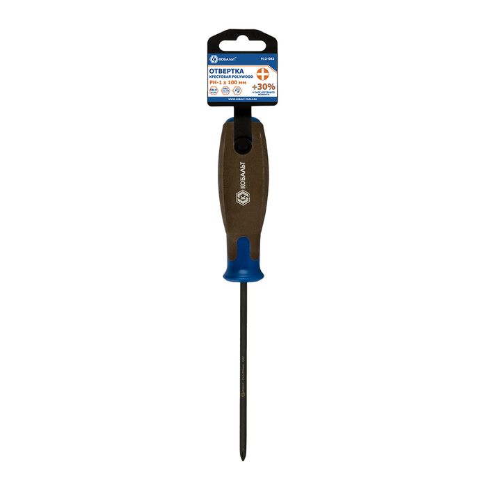 Отвертка POLYWOOD КОБАЛЬТ PH-1 х 100 мм CR-V, древесно-полимерная рукоятка, подвес (912-083)