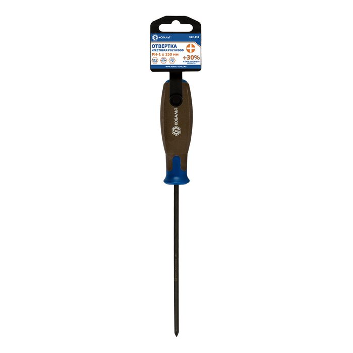 Отвертка POLYWOOD КОБАЛЬТ PH-1 х 150 мм CR-V, древесно-полимерная рукоятка, подвес (912-090) - цена, фото, технические характеристики