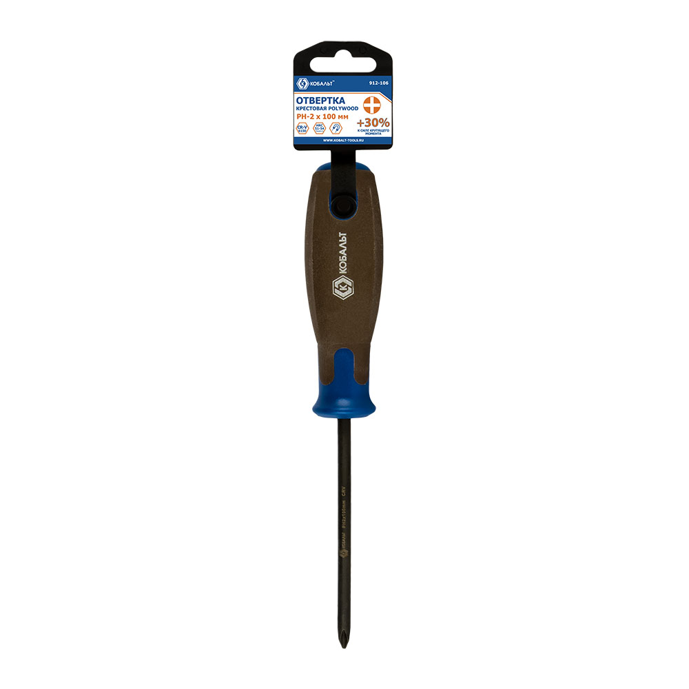 Отвертка POLYWOOD КОБАЛЬТ PH-2 х 100 мм CR-V, древесно-полимерная рукоятка, подвес (912-106) - цена, фото, технические характеристики