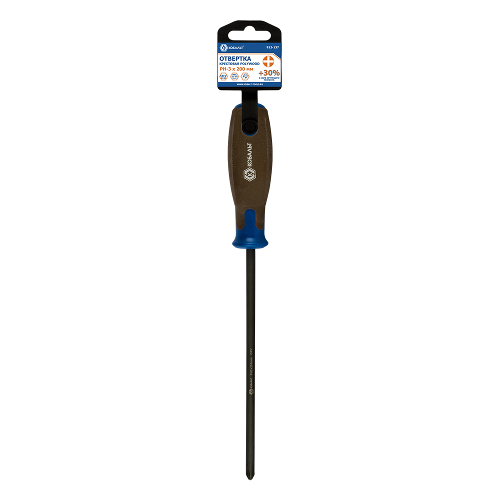 Отвертка POLYWOOD КОБАЛЬТ PH-3 х 200 мм CR-V, древесно-полимерная рукоятка, подвес (912-137) - цена, фото, технические характеристики