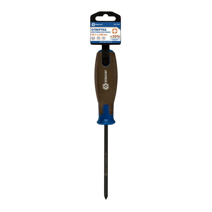 Отвертка POLYWOOD КОБАЛЬТ PZ-1 х 100 мм CR-V, древесно-полимерная рукоятка, подвес (912-144) - цена, фото, технические характеристики