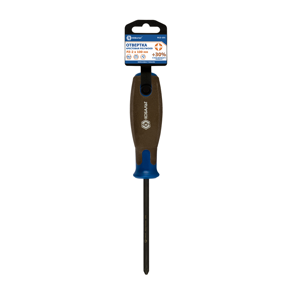 Отвертка POLYWOOD КОБАЛЬТ PZ-2 х 100 мм CR-V, древесно-полимерная рукоятка, подвес (912-151) - цена, фото, технические характеристики