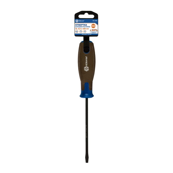 Отвертка POLYWOOD КОБАЛЬТ SL 4,0 х 100 мм, CR-V, древесно-полимерная рукоятка, подвес (911-994)