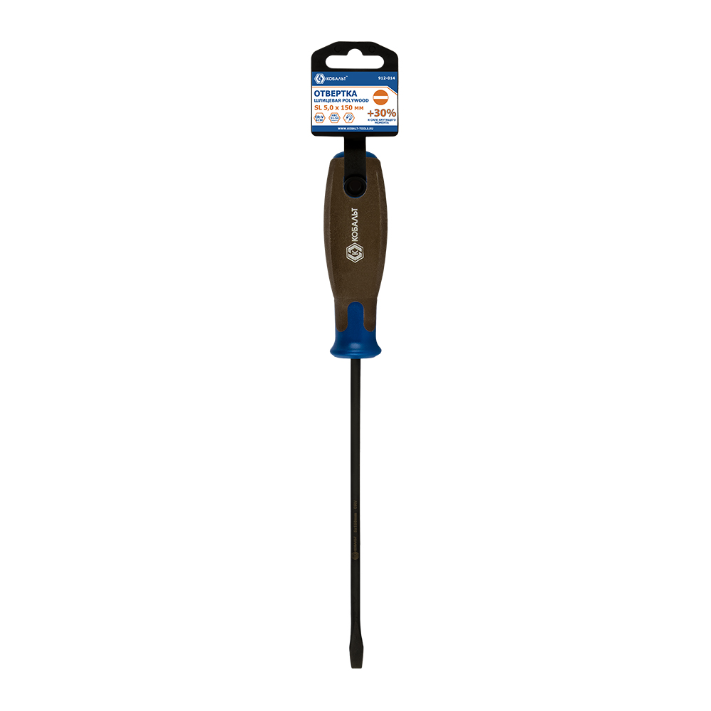 Отвертка POLYWOOD КОБАЛЬТ SL 5,0 х 150 мм, CR-V, древесно-полимерная рукоятка, подвес (912-014) - цена, фото, технические характеристики