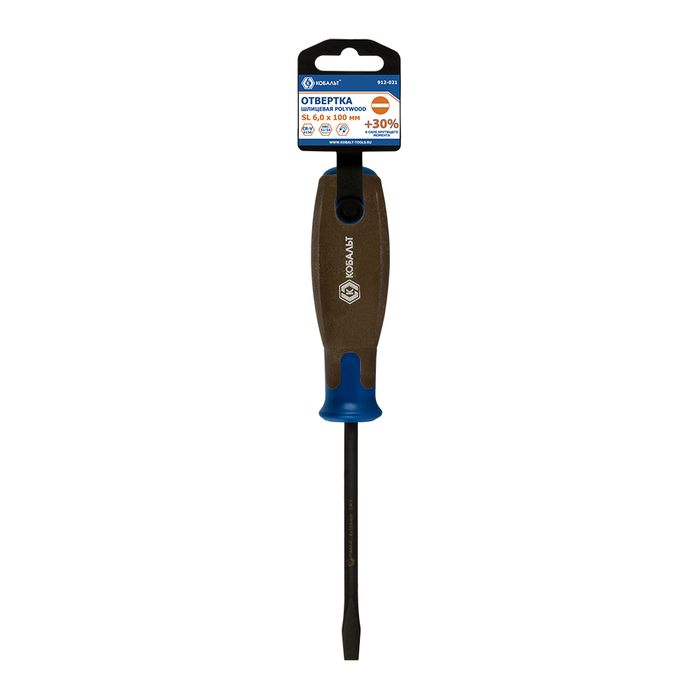 Отвертка POLYWOOD КОБАЛЬТ SL 6,0 х 100 мм, CR-V, древесно-полимерная рукоятка, подвес (912-021)