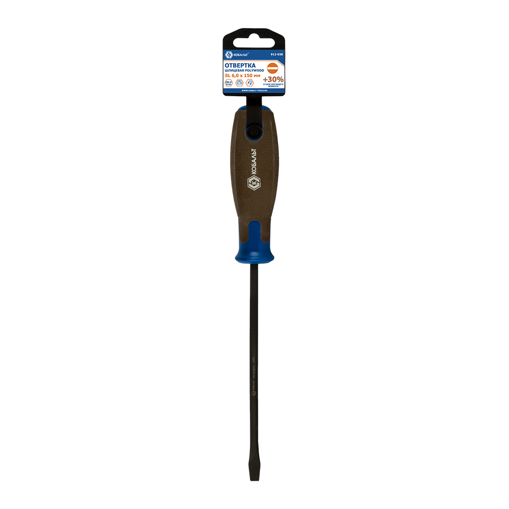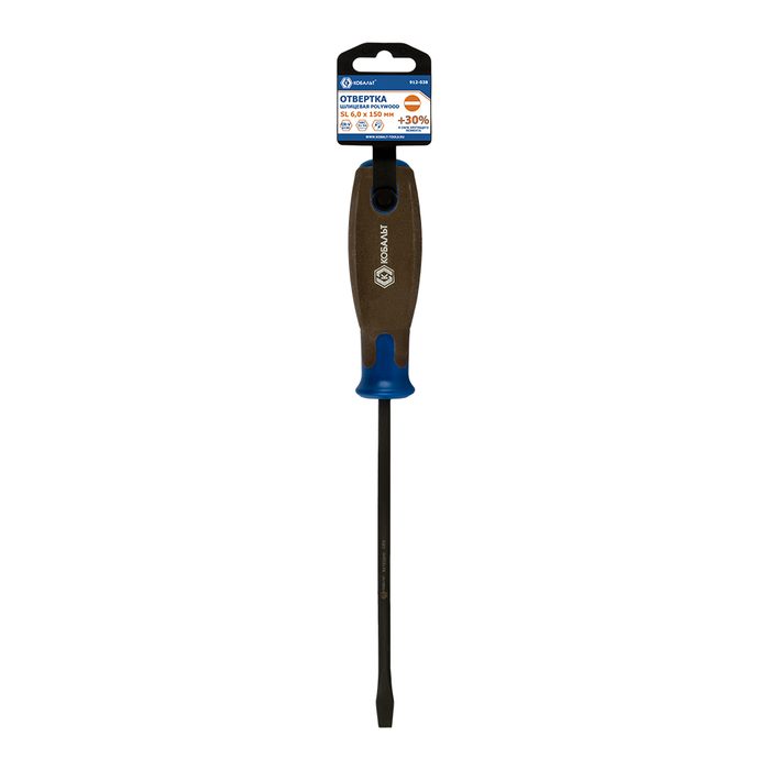 Отвертка POLYWOOD КОБАЛЬТ SL 6,0 х 150 мм, CR-V, древесно-полимерная рукоятка, подвес (912-038) - цена, фото, технические характеристики