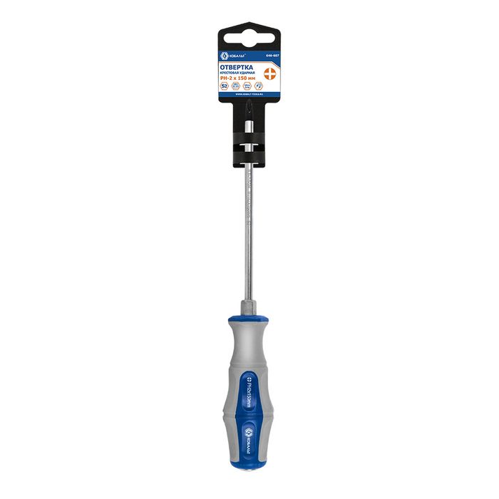 Отвертка ударная КОБАЛЬТ Ultra Grip PH-2 x 150 мм, сталь S2, двухкомпонентная рукоятка, подвес (646-607) - цена, фото, технические характеристики