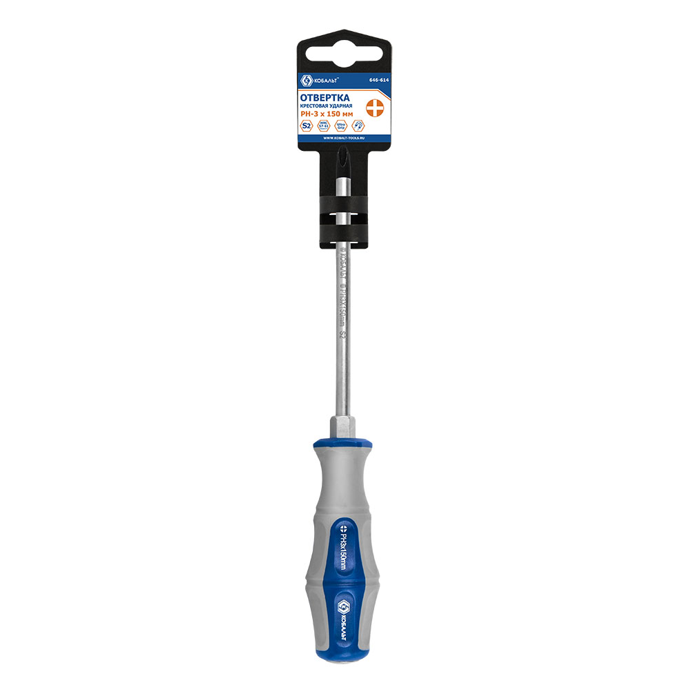 Отвертка ударная КОБАЛЬТ Ultra Grip PH-3 x 150 мм, сталь S2, двухкомпонентная рукоятка, подвес (646-614) - цена, фото, технические характеристики