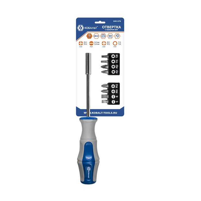 Отвертка рукоятка КОБАЛЬТ Ultra Grip, с набором бит, CR-V, 9 ШТ., блистер (646-676) - цена, фото, технические характеристики