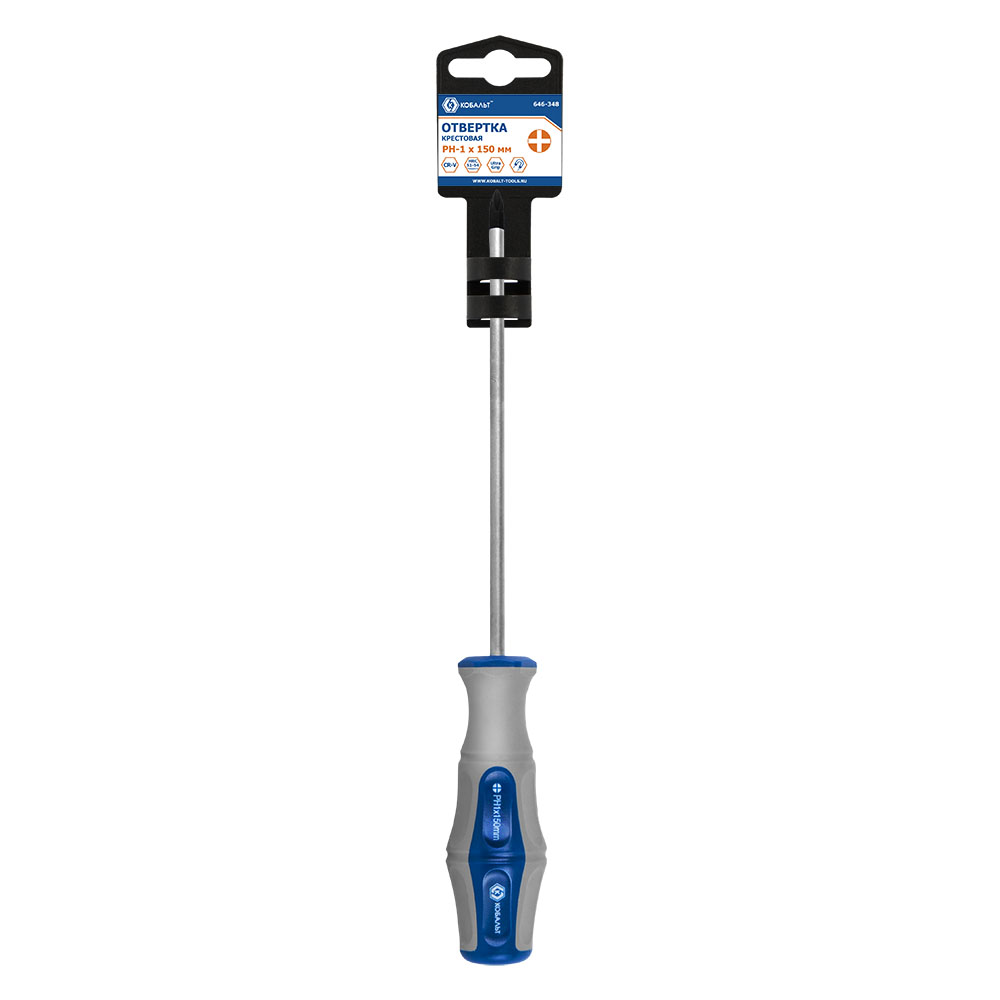 Отвертка Ultra Grip КОБАЛЬТ PH-1 х 150 мм, CR-V, двухкомпонентная рукоятка, подвес (646-348) - цена, фото, технические характеристики