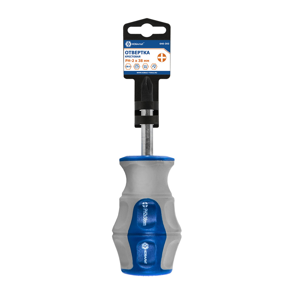 Отвертка Ultra Grip КОБАЛЬТ PH-2 х 38 мм, CR-V, двухкомпонентная рукоятка, подвес (646-393) - цена, фото, технические характеристики