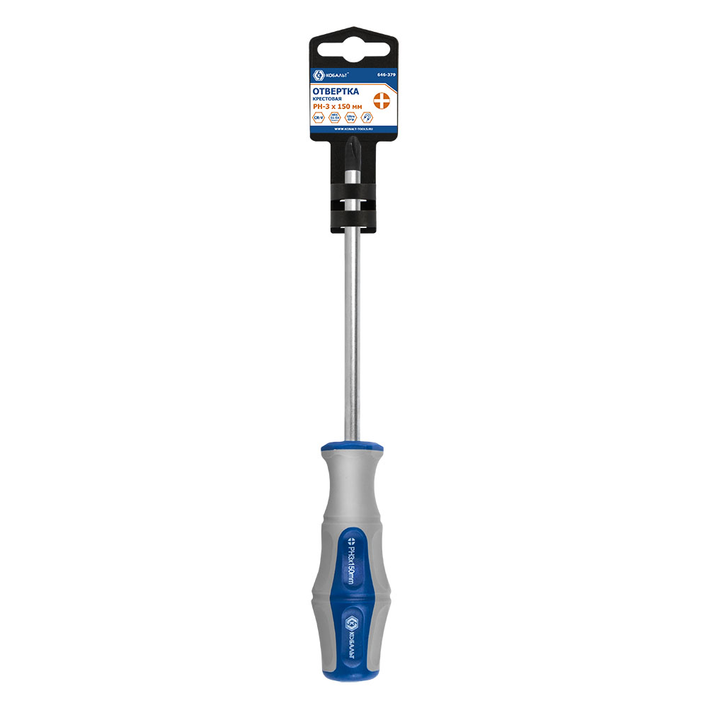 Отвертка Ultra Grip КОБАЛЬТ PH-3 х 150 мм, CR-V, двухкомпонентная рукоятка, подвес (646-379) - цена, фото, технические характеристики
