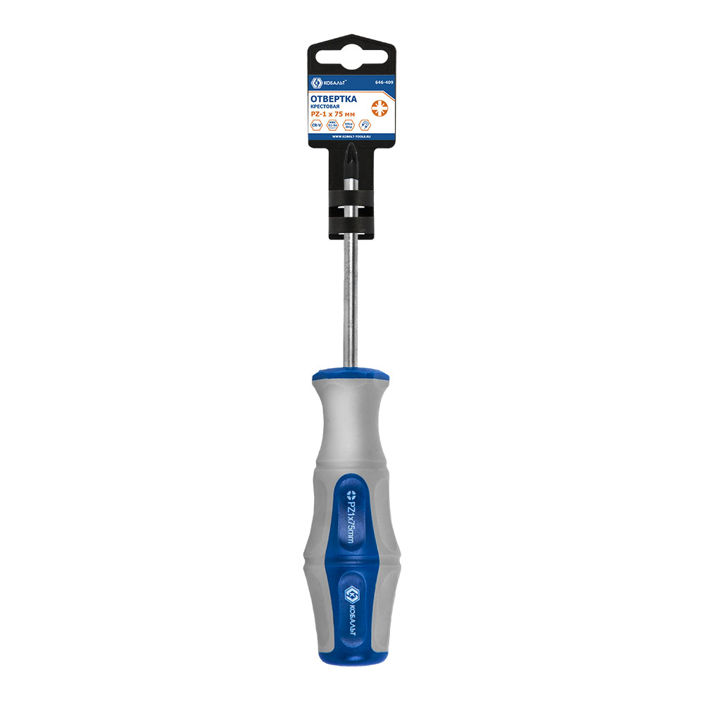 Отвертка Ultra Grip КОБАЛЬТ PZ-1 х 75 мм, CR-V, двухкомпонентная рукоятка, подвес (646-409)