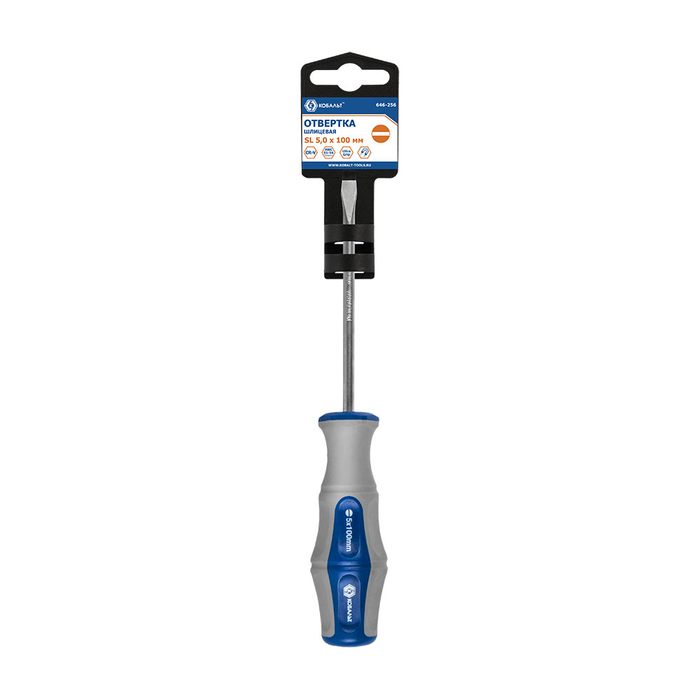 Отвертка Ultra Grip КОБАЛЬТ SL 5,0 х 100 мм, CR-V, двухкомпонентная рукоятка, подвес (646-256) - цена, фото, технические характеристики