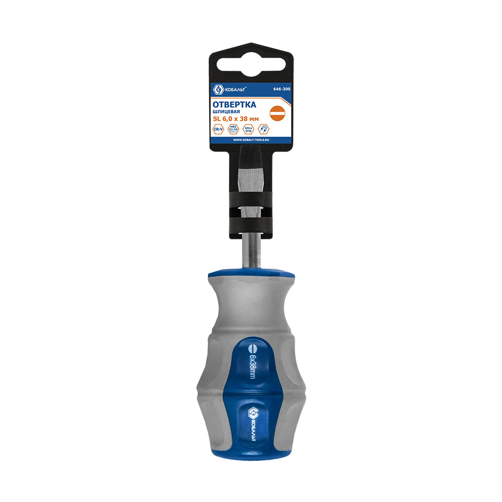 Отвертка Ultra Grip КОБАЛЬТ SL 6,0 х 38 мм, CR-V, двухкомпонентная рукоятка, подвес (646-300) - цена, фото, технические характеристики