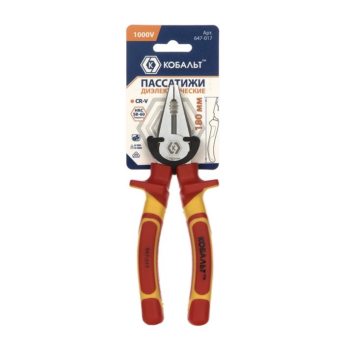 Пассатижи КОБАЛЬТ диэлектрические, 180 мм, CR-V, подвес (647-017) - цена, фото, технические характеристики