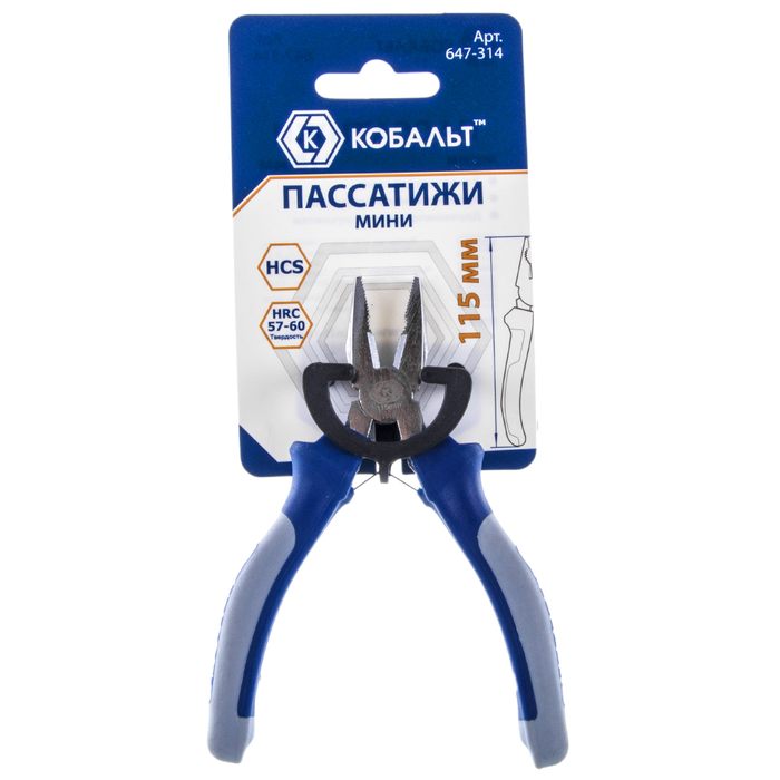 Пассатижи КОБАЛЬТ мини 115 мм, 2-х компонентные рукоятки, HCS, подвес (647-314) - цена, фото, технические характеристики