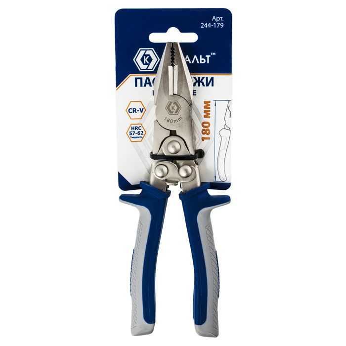 Пассатижи КОБАЛЬТ рычажные, 180 мм, 2-х компонентные рукоятки, CR-V, подвес (244-179) - цена, фото, технические характеристики