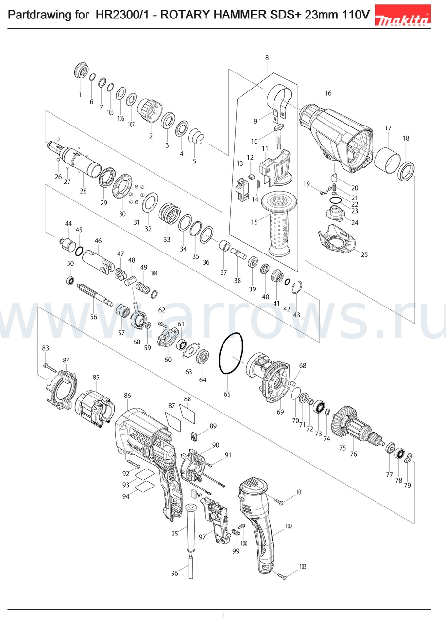 Перфоратор сетевой SDS-plus MAKITA HR-2300 (720 Вт, 2.3Дж, кейс) - цена, фото, технические характеристики