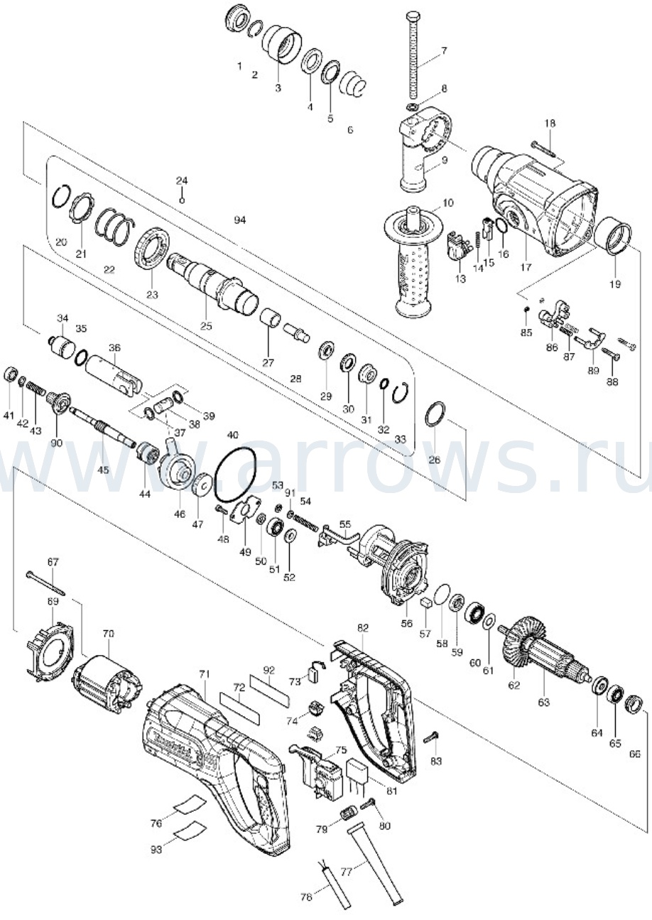 Перфоратор сетевой SDS-plus MAKITA HR-2475 (780 Вт, 2,7Дж, кейс) - цена, фото, технические характеристики