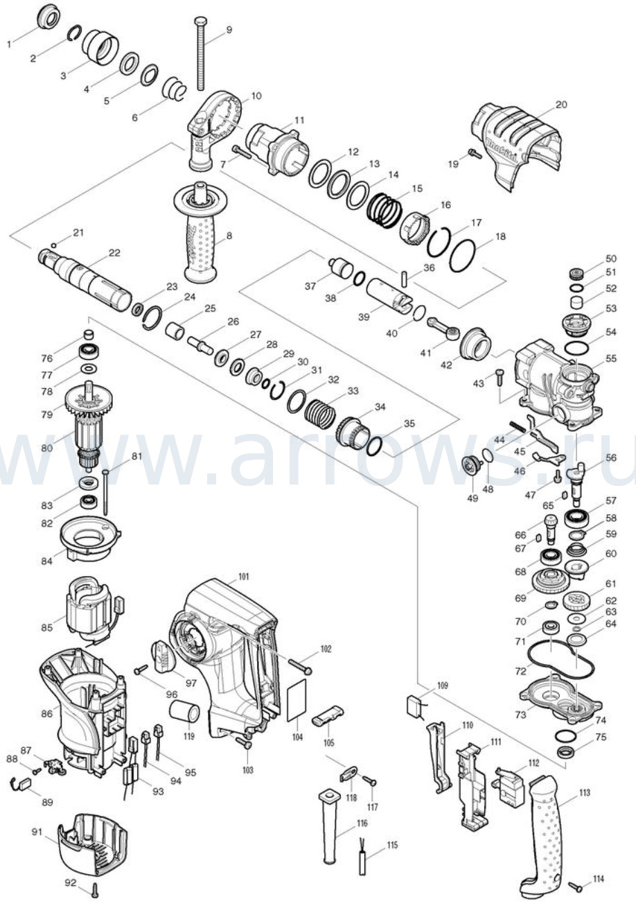 Перфоратор сетевой SDS-plus MAKITA HR-2810 (800 Вт, 2,9 Дж, кейс) - цена, фото, технические характеристики