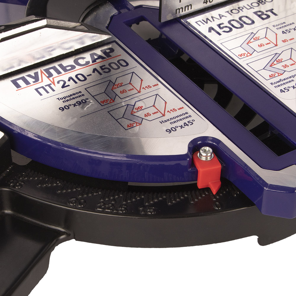 Пила торцовочная ПУЛЬСАР ПТ 210-1500 (1500Вт, 210х30мм, рез 60х115мм, 6,8 кг) - цена, фото, технические характеристики