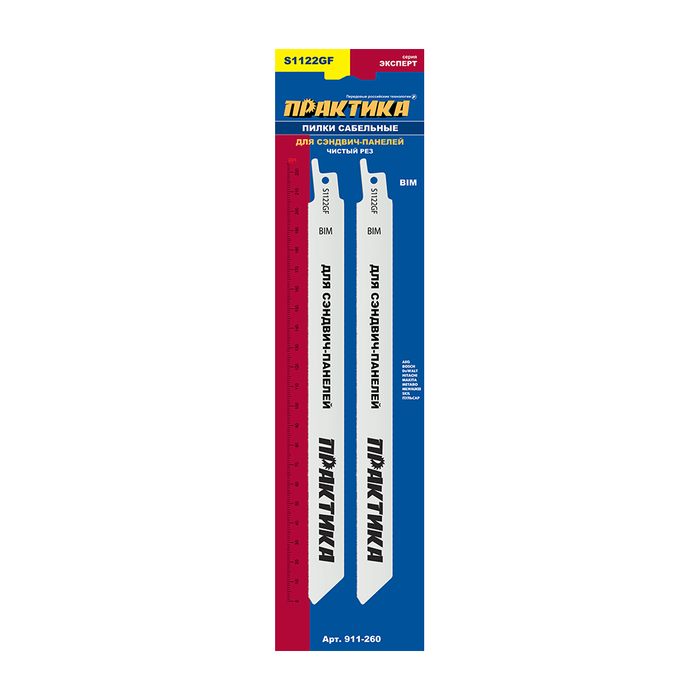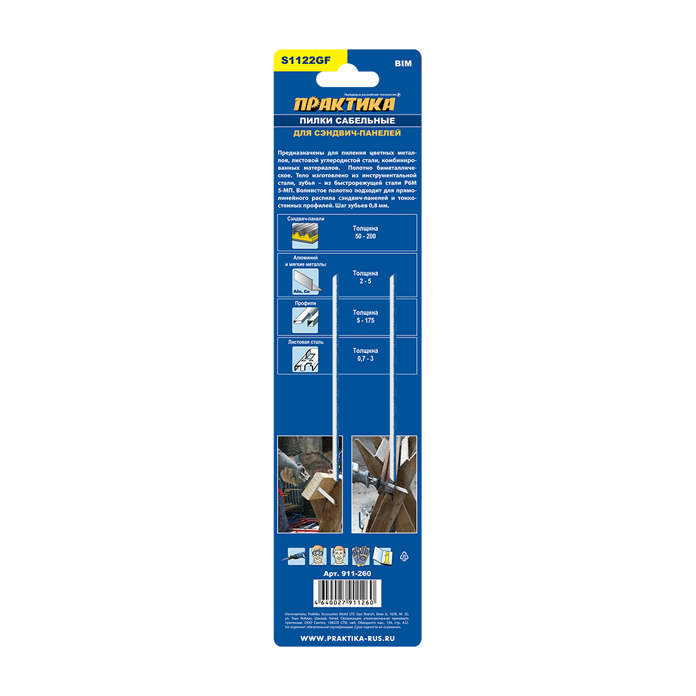 Пилки для сабельной пилы по стали ПРАКТИКА S1122GF для сэндвич панелей BIM, по мет/пласт, шаг 0.8 мм, длина 225 мм, 2 шт (911-260) - цена, фото, технические характеристики