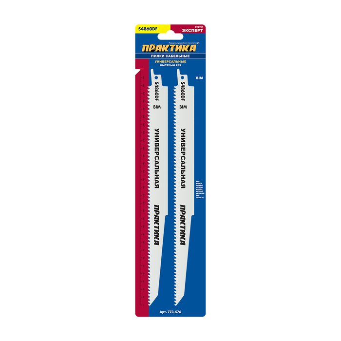Пилки для сабельной пилы универсальные ПРАКТИКА S4860DF BIM, по дер/мет/пласт, шаг 4 мм, длина 300 мм (2 шт) (773-576)