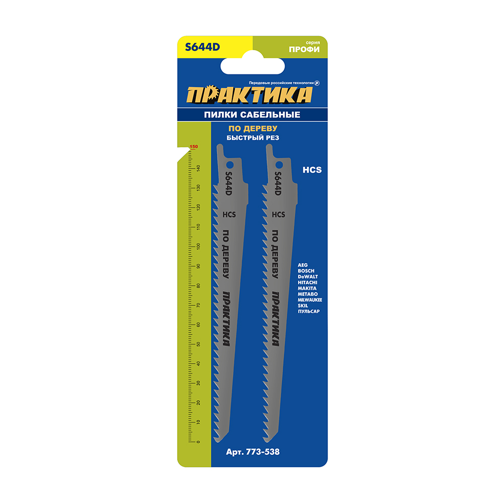 Пилки для сабельной пилы по дереву, ДСП ПРАКТИКА S644D HCS, шаг 4,3 мм, длина 150 мм, 2 шт (773-538) HCS, шаг 4,3 мм, длина 150 мм, 2 шт (773-538)